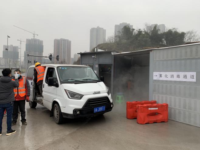 復工當日工作區域共有管理人員21人,施工工人17人,經檢查所有人員全部身體健康,無重點疫區及人員接觸史,外地回渝人員全部已隔離超過十四天,當日體溫均正常。項目部工作區與生活區全部實行封閉式管理,所有進出人員均需實名制登記,測量體溫正常后方可進入,現場防疫消毒用品儲備充足,經檢查全部人員均已正確佩戴防護口罩,消毒通道正常運行。