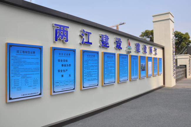 施工項目部作為建筑公司挺在前線的形象展示窗口,項目部形象的建設(shè)工作對于展示企業(yè)自身形象具有舉足輕重的意義。進一步樹立良好企業(yè)形象,積極發(fā)揮項目部的宣傳展示作用,不斷強化項目部形象建設(shè),是兩江建設(shè)公司重點推進工程本身建設(shè)外的一項重要工作,在重點強化工程建設(shè)的硬實力外,也要強化安全文明施工、項目形象建設(shè)的軟實力,不斷推動公司實現(xiàn)高質(zhì)量發(fā)展。