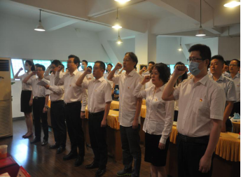 隨后,全體新黨員和老黨員整齊肅立,面向黨旗,在黨委委員丁玉海同志的帶領下,進行莊嚴宣誓和重溫入黨誓詞,進一步強化黨員意識,增強黨性。