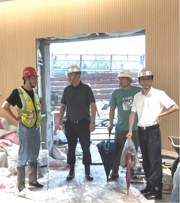 兩江新區教育局副局長余瑞對于連夜暴雨后現場安全情況進行視察,要求加強現場有關安全措施,做好現場全面檢查、維修、整改、排查安全隱患,確保施工安全;同時重點對現場圍擋、用電器具及電源是否關閉等一系列危險源進行檢查,對于存在的隱患當即要求現場整改。