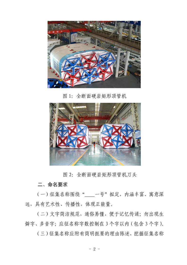 關于征集全斷面硬巖矩形頂管機名稱的公告