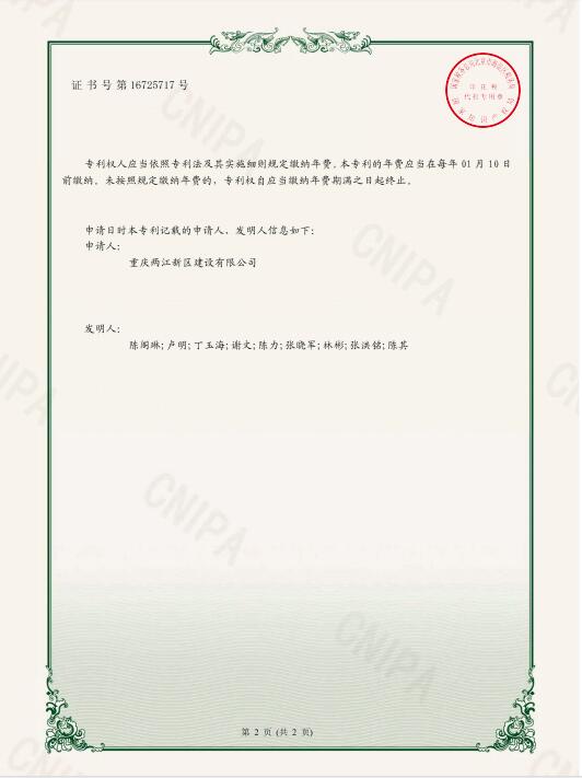 兩江建設公司又榮獲一項國家知識產權局實用新型專利和證書
