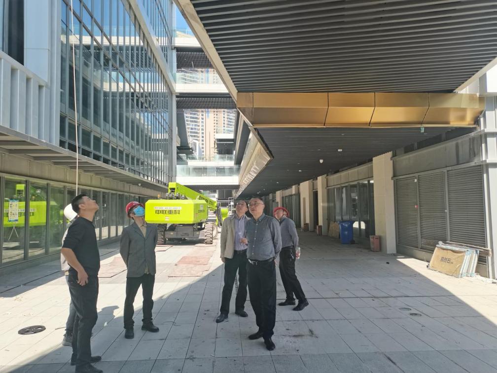李寧董事長(zhǎng)先后對(duì)北側(cè)水景、廊道鋁方通、剛連橋裝飾、車庫(kù)地坪漆等部位進(jìn)行檢查,對(duì)項(xiàng)目整體效果呈現(xiàn)表示肯定;同時(shí)在工程細(xì)節(jié)部位也要做到精益求精的效果,特別是花池馬賽克面層、拉絲仿銅不銹鋼裝飾、剛連橋鋁方通裝飾效果等提出要求:“要站在游客的角度做好每一處細(xì)節(jié)。另外最近疫情反彈,在推動(dòng)驗(yàn)收工作的同時(shí)也要做好疫情防控工作”。