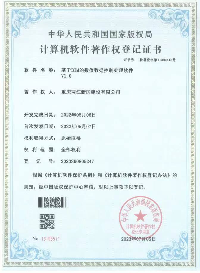 兩江建設(shè)公司首獲國(guó)家計(jì)算機(jī)軟件著作權(quán)